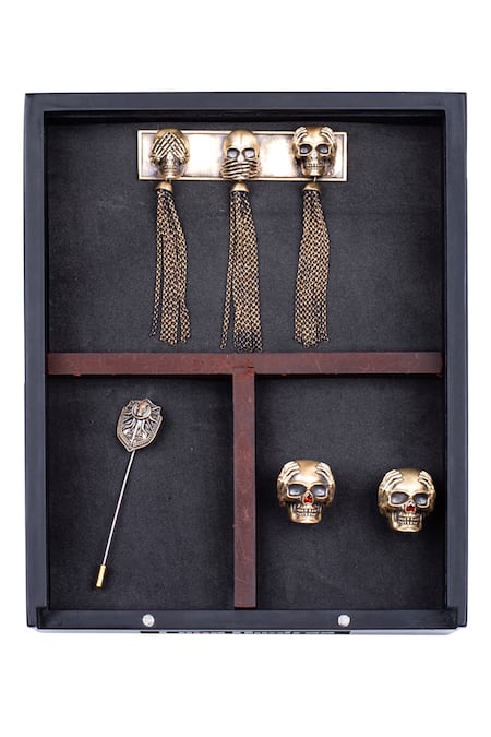 Stone, Skull motif brooch, Chain tassels, Carved detail, Closure:Cufflinks: Bullet back & Toggle