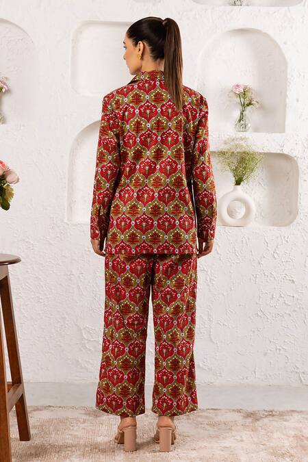 Rivaaj Clothing_Red Cotton Bloom Print Pant Set _Online_at_Aza_Fashions