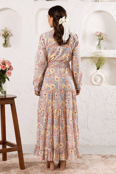 Buy_Rivaaj Clothing_White Cotton Frill Botanic Pattern Maxi Dress_at_Aza_Fashions