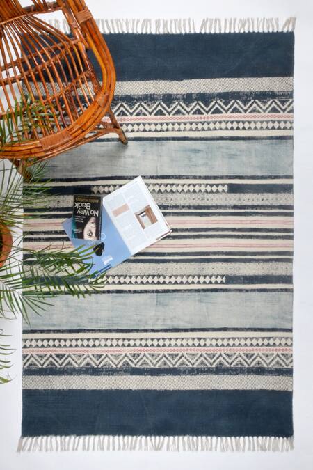 Blue 100% Cotton Block Print Hand Rug
