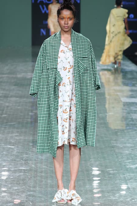 Green oversized jacket with all over checkered pattern.