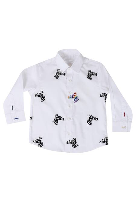 Buy_Partykles_White Cotton Embroidery Zebra Print Shirt_at_Aza_Fashions