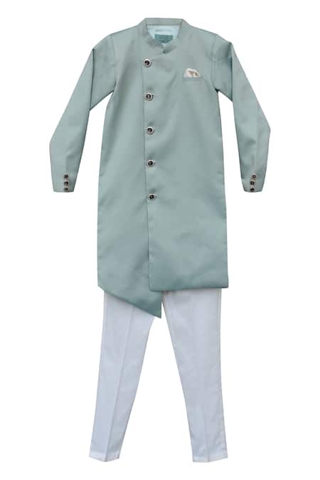 Buy_Fayon Kids_Green Cotton, Silk Kurta Set _at_Aza_Fashions