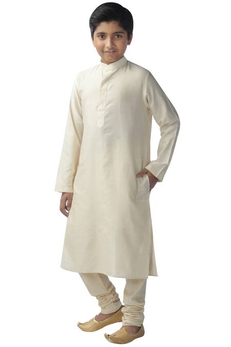 Buy_Kommal Sood_Cream Cotton, Silk Kurta Set_Online_at_Aza_Fashions