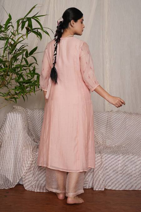 Pink Cotton Silk Embroidery Sequin Crayon Blush Pant