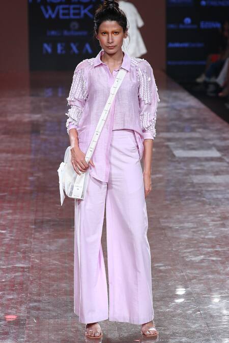 Buy_Kanelle_Purple Crushed Cotton Trousers_Online_at_Aza_Fashions