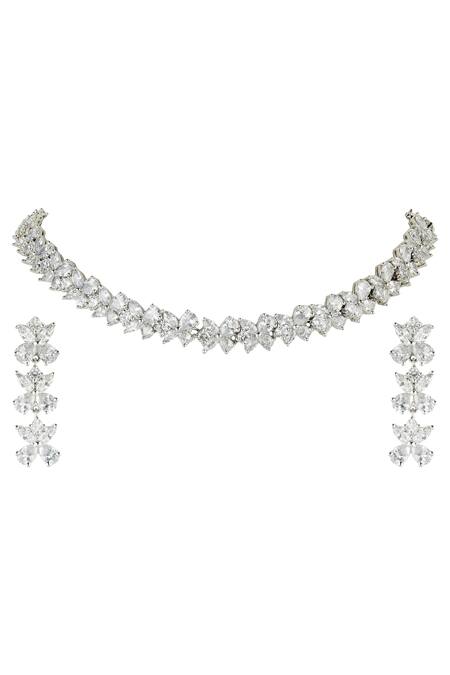 Silver toned choker with crystal embellishments. Comes with earrings.