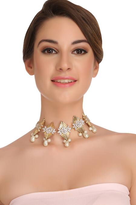 Gold choker featuring Swarovski crystal and cultured pearl embellishments