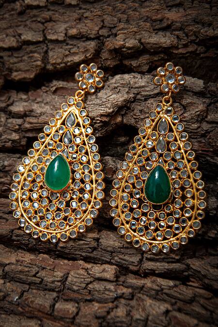 Buy_Neeta Boochra_White Onyx, Checkers Crystal Embellished Cutwork Earrings_Online_at_Aza_Fashions