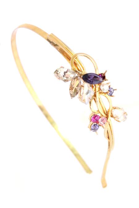 Gold toned hairband with multi colour crystals.