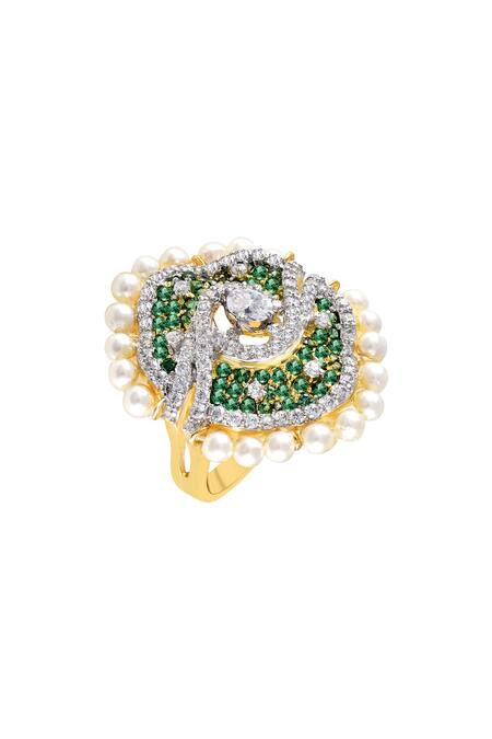 Cutout detailing on the ring, Embellished with pearls and green stones