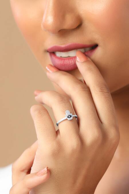 Blue Crystals Cubic Zircon Studded Hamsa Ring