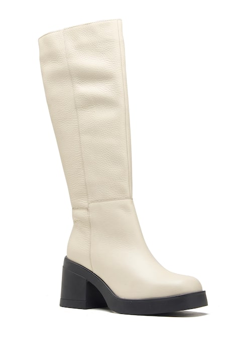 Pebble textured leather finish, Side zip closure for easy wear, Chunky heel design for added comfort