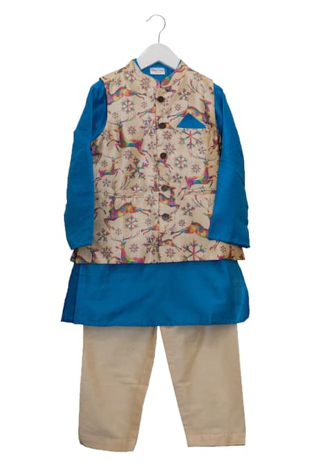 Buy_Kids Lane_Beige Deer Printed Jacket With Kurta And Pyjama _at_Aza_Fashions