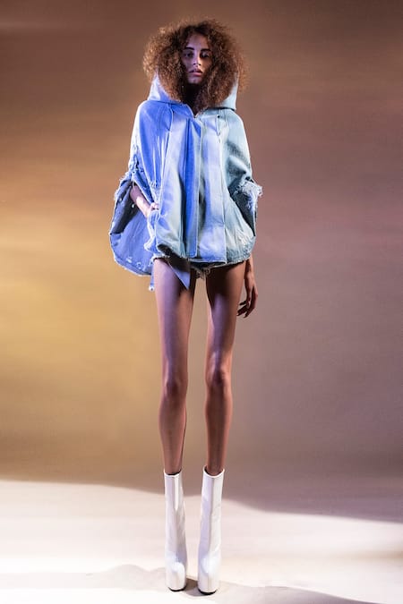Embroidered, Roll tab sleeves, Cape with hoodie, Tie-up drawstring, Note:, Shorts worn by the model is not for sale
