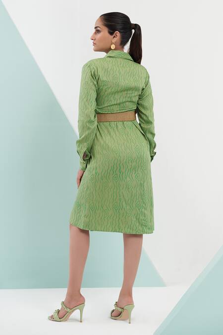 Green Galaxy Cotton Printed Wave Shirt Collar Cher Dress