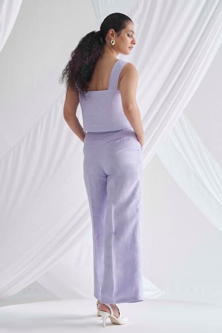 Purple Linen Square Neck Strap Top And Palazzo Pant Set