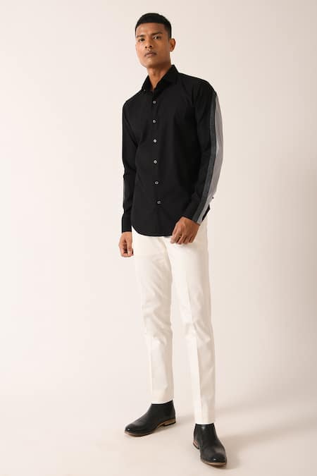 Black Cotton, Denim Color Block Shirt