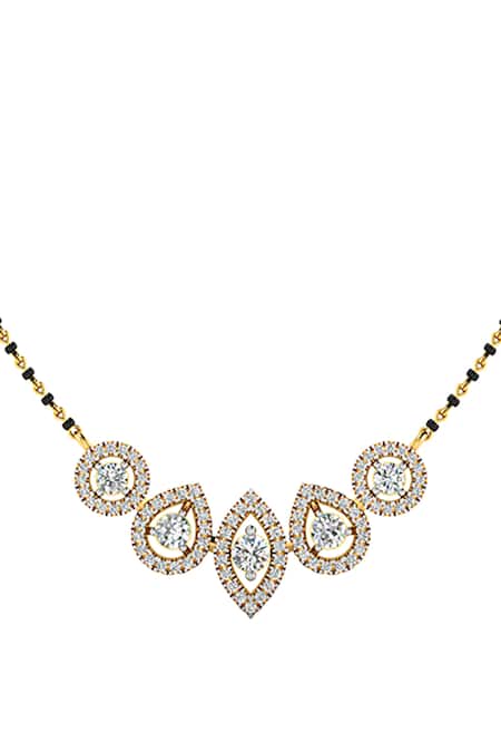 Buy_Divine Solitaires_Gold Plated Imitation Diamonds 18kt Leaf Gleam Mangalsutra_at_Aza_Fashions
