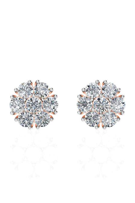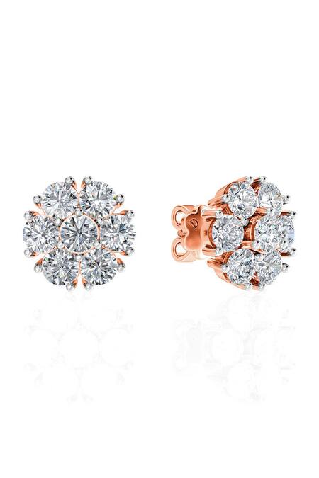 18kt rose gold stud earrings featuring round diamond stones arranged in a blossom pattern