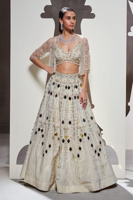 Ivory Tissue Mirrors, Beads Anora Embellished Lehenga Set With Jacket