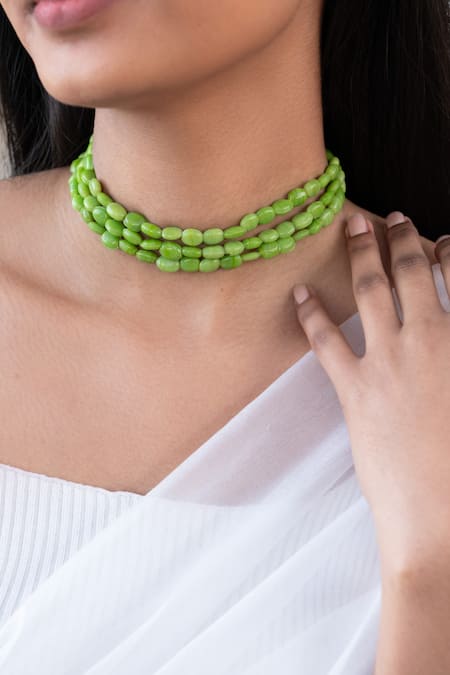 Tri-layered choker with green beads
