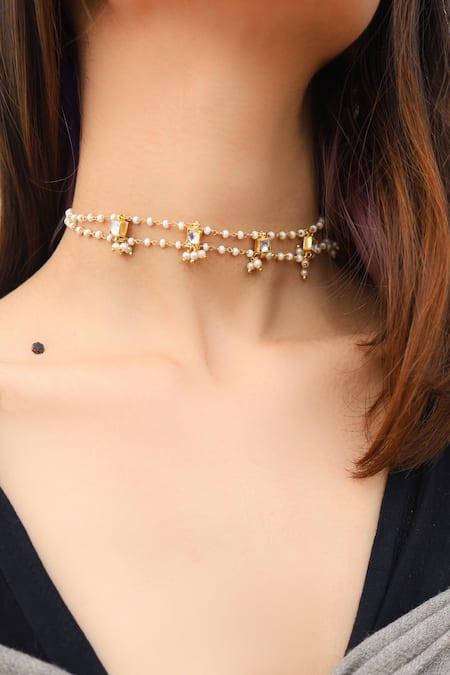 Buy_Do Taara_Gold Plated Kundan Pearl Choker _at_Aza_Fashions