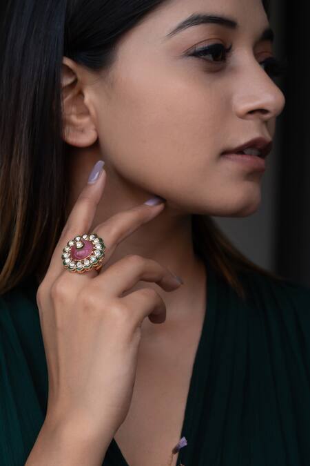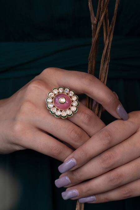 Pink Stones Natural And Kundan Ring
