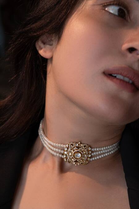 22kt gold plated choker with pearls and polki embellishments.