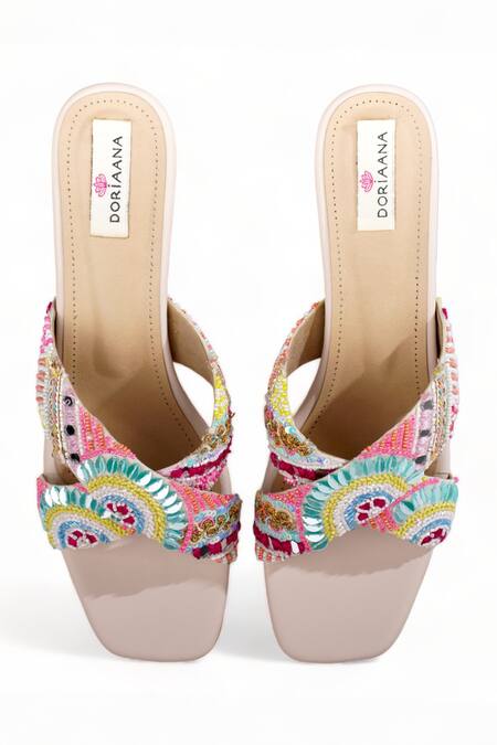 Pink Sequins, Beads Sunshine Embellished Strap Block Heels
