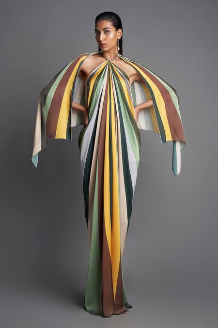 Color block dress, Attached drapes, Back cut-outs, Metal pipe details