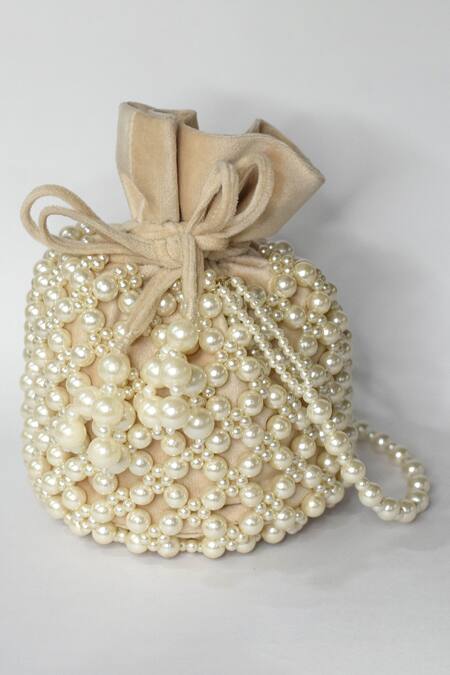Buy_Eena_Beige Pearls Jaimini Beaded Potli Bag_at_Aza_Fashions
