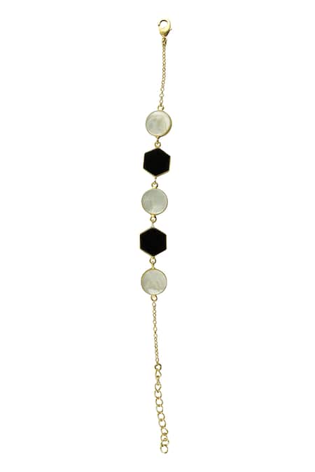 Black and white bracelet featuring white mother of pearl and black onyx stones