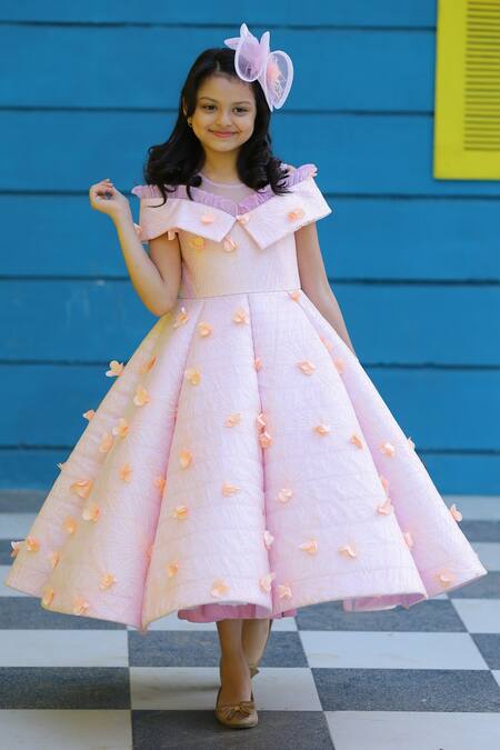 Lilac dress with all over texture & placement 3D floral embellishment. Comes with hair accessorie.
