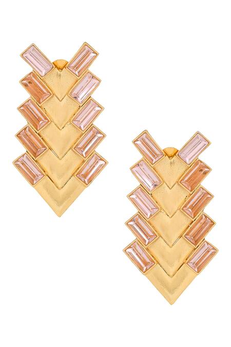 Gold Plated Stone Embellished Geometric Motif Earrings