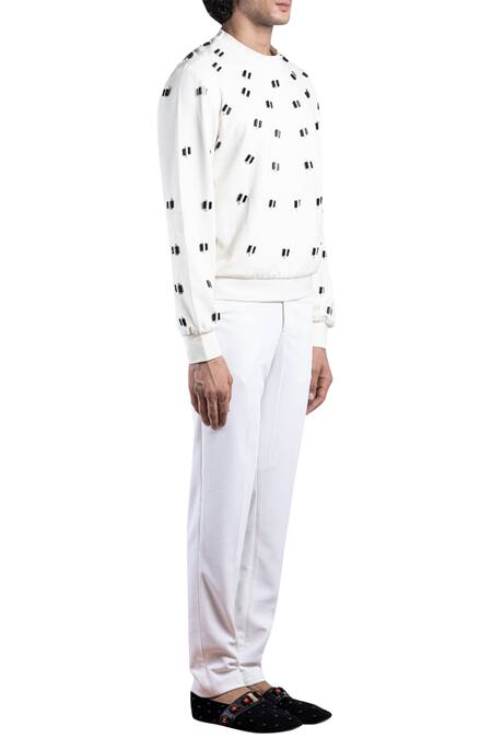 White jumper with all over embellishments.