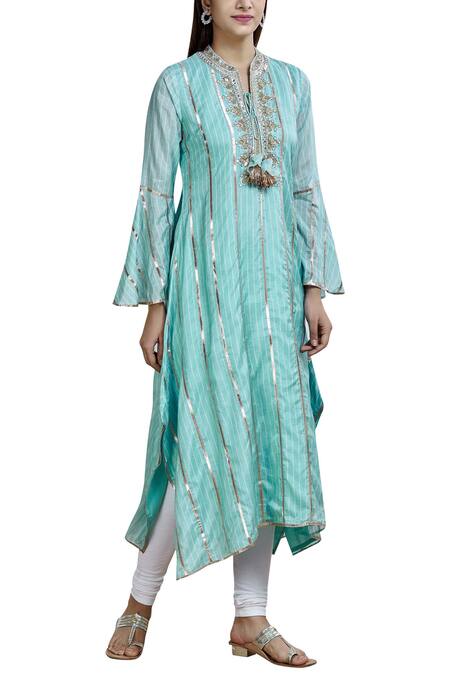 Buy_Gopi Vaid_Blue Cotton Silk Embellished Kurta_at_Aza_Fashions