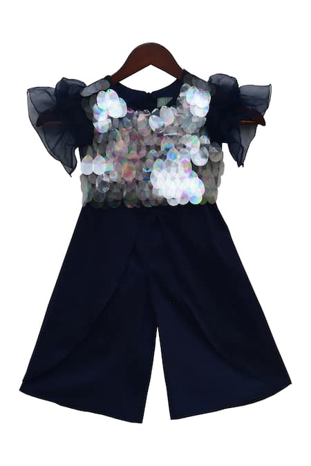 Sequin embellished front bodice, Pants with overlay detail, Wide legged pant design