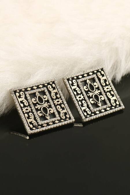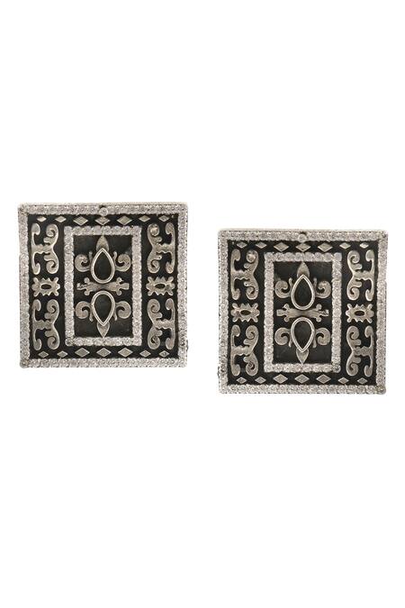 Buy_Palace Of Silver_White Embellished Rawa Work Stud Earrings_at_Aza_Fashions