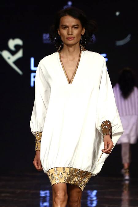 Buy_Delhi Vintage Company_White Cotton Embroidered Anti-fit Dress_Online_at_Aza_Fashions