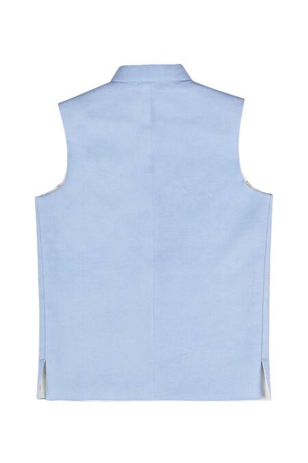Buy_Little Stars_Blue Handloom Cotton Embroidered Motifs Nehru Jacket _Online_at_Aza_Fashions
