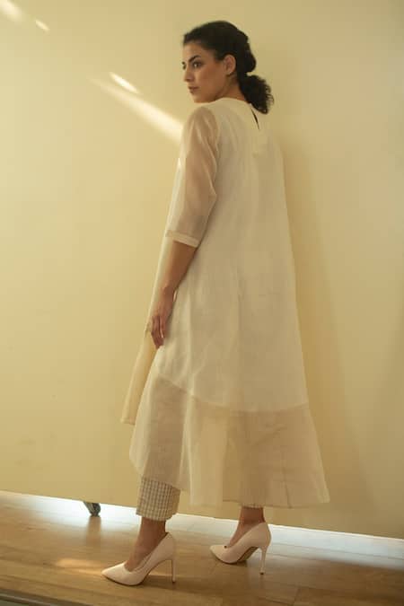 Shop_Oja_Cream Handloom Silk Floral Applique Round Embroidered Tunic And Pant Set _at_Aza_Fashions