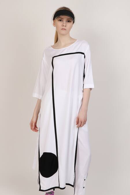 White straight tunic with placement patchwork & contrast panel detail. Comes with pants.
