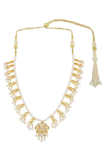 Filigree detailing on lotus motifs, Adjustable thread sarafa for comfort, Delicate pearl drop embellishments