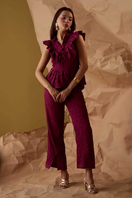 Magenta Waffle Crepe Odette Peplum Top With Pant