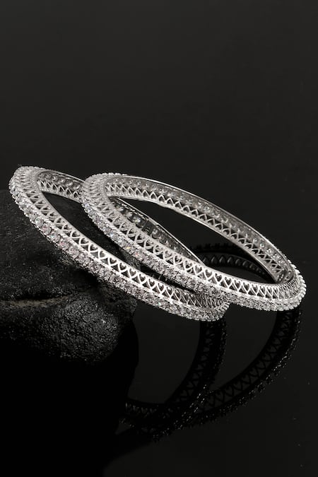 Silver bangles embellished with American diamonds and heart cutouts on the sides. Crafted from 92.5 sterling silver, this set features a stylish design.