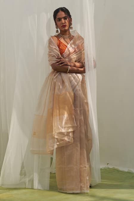 Off White Tissue Banhi Handloom Woven Pattern Saree With Running Blouse