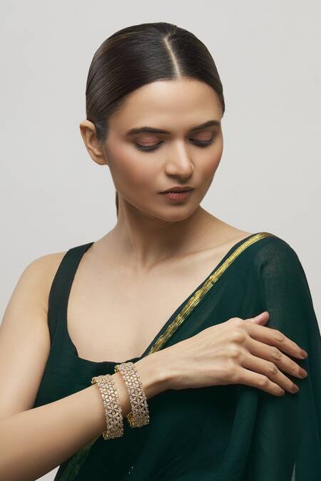 Gold-plated bangles with encrusted uncut diamonds & floral motif cutwork detail.