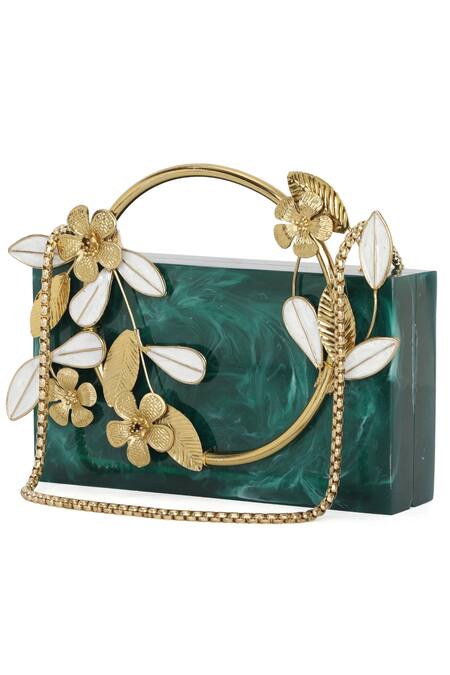 Green Floral Halo Metal Clutch Bag