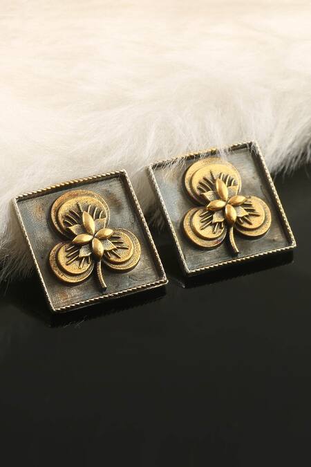 Shop_Palace Of Silver_Gold Plated Floral Pattern Round Ear Studs_at_Aza_Fashions